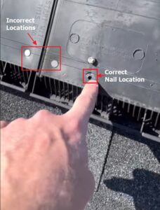 That confirmed the installation error right away. The nails were all in the wrong place, near the edge rather than in the recommended fastening zone.