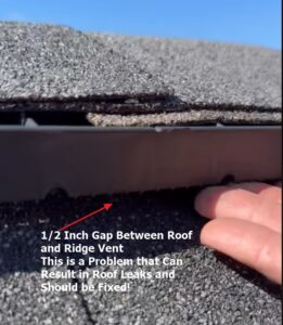 This is one of those roofing details that many homeowners are never told to look at. Even some home inspections will not catch it, especially if the ridge cap shingles are still in place and the defect is not obvious from the ground.
